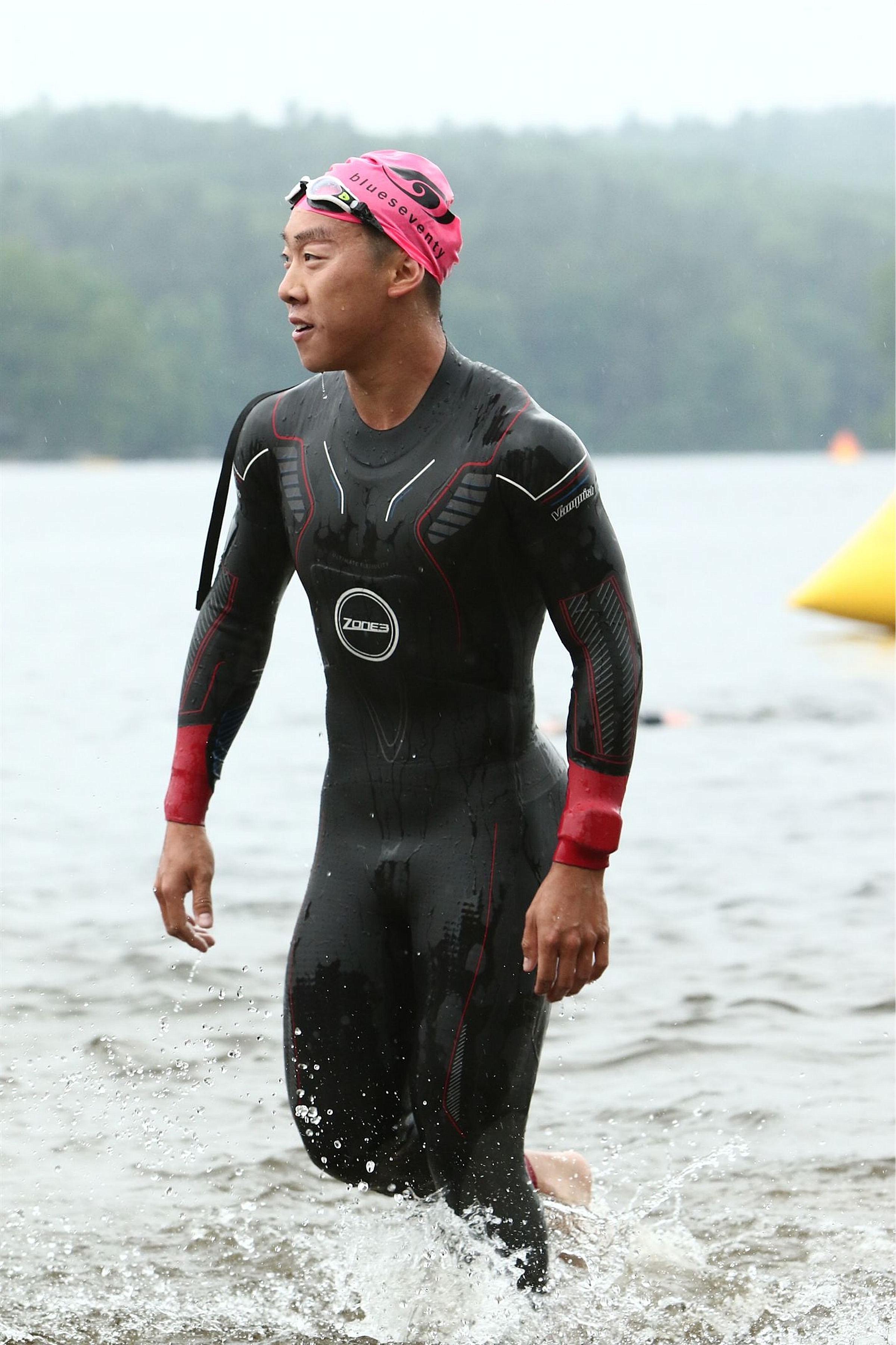 Because of the relatively late start, I was able to find plenty of company in the water. Cloudy conditions made sighting the neon yellow and orange buoys quite elementary – and after 34:01, I emerged from Lake Quassapaug towards my bike.