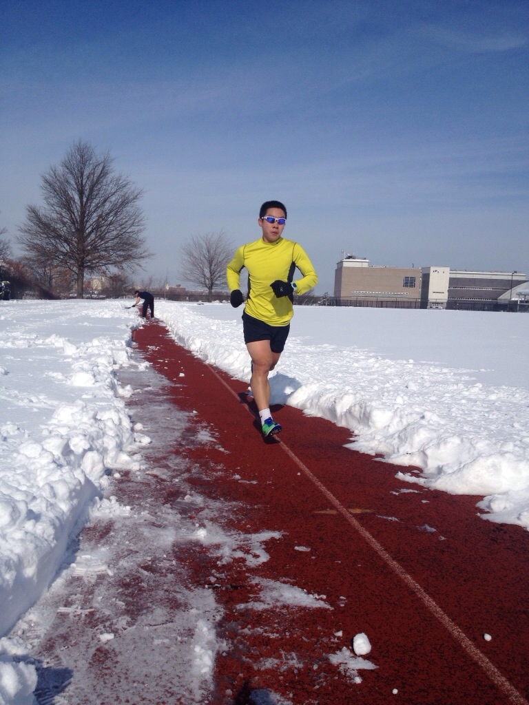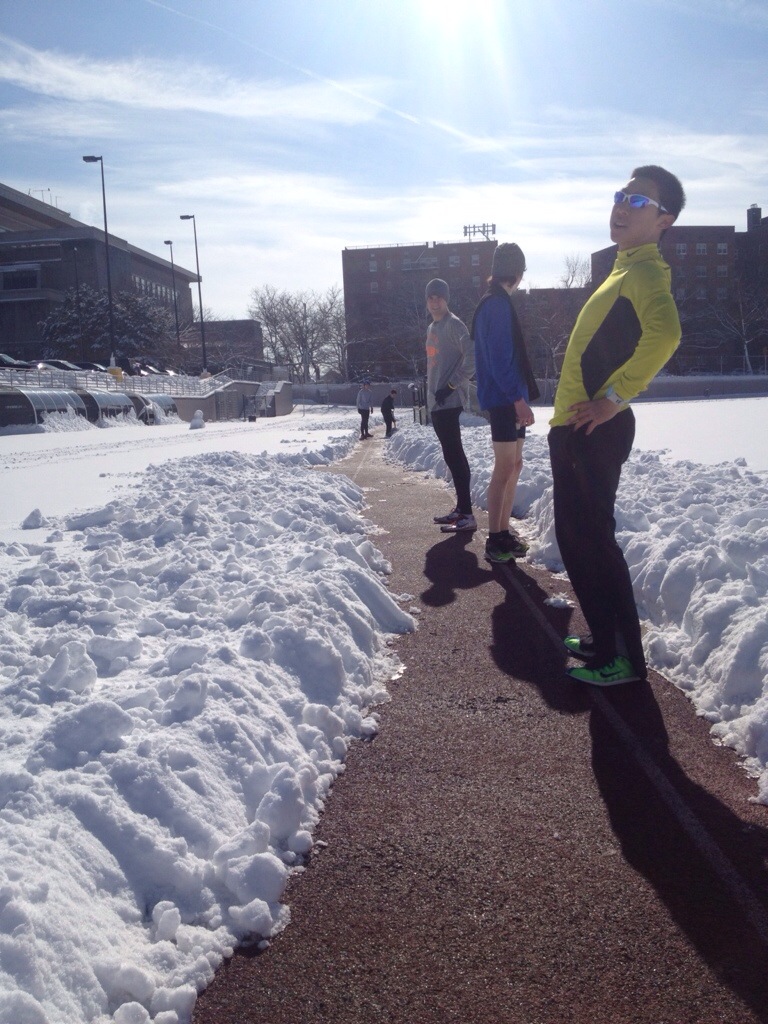 What do you do when you have a track workout but the track is covered in 6 inches of snow? You shovel it.