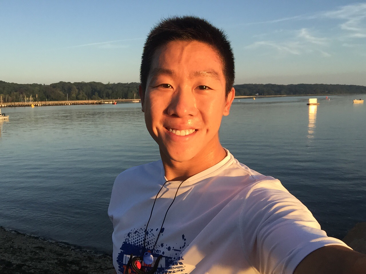 I arrived at Oyster Bay around 6am. The race didn’t start until 7:30, so I had plenty of time to get my transition area set up, body-marked, and warmed up. By 6:30, I was all set so I did a quick 2-mile jog around the Main Street area; and of course, a post run selfie!